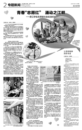 浙江学子用坚守再一次给出答案:温州医科大学学生扎根雪域高原,十年如一日开展健康光明行;浙江农林大学“雷锋班”坚守16载,持续开展生态科普、乡村助农等志愿服务。正是依靠专业赋能、品牌化运作和代代传承的坚持,浙江的志愿服务走出了“一阵风”的困境,慢慢长成“四季春”。