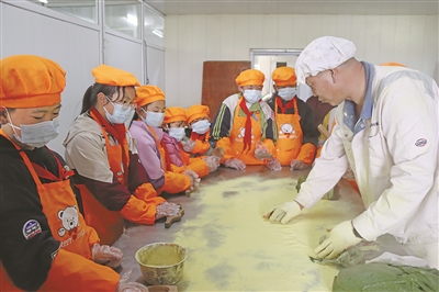 3月27日,舟山市普陀区六横镇龙山小学的学生走进当地食品厂,亲手学习制作时令小吃——青饼。在工人的耐心指导下,学生们认真观摩、动手体验,感受着从揉面到塑形等一道道传统工序中的匠心与趣味。校长刘军杰介绍,通过这样的实践活动,学生既能沉浸式感受本地风俗文化,也能在劳动中收获成长的快乐。