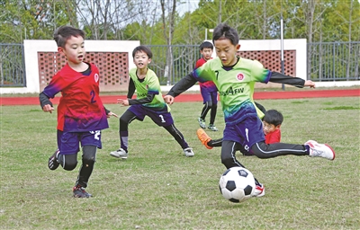 3月30日,华东师范大学附属仙居学校组织学生开展足球比赛,以营造浓厚的校园足球文化氛围,激发学生对足球运动的热爱。图为比赛现场。