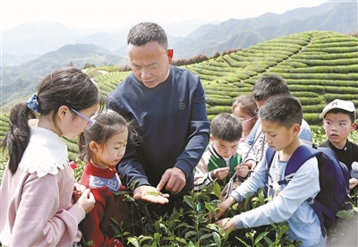 今年春季学期,浙江多地于4月启动春假。各地依托本地资源,推出科普研学、文化体验等活动,让学生在明媚的春光中拓宽视野、收获成长。图为武义县青少年宫组织学生走进茶园学习采茶。