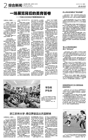 开幕式上,最受期待的“揭锅仪式”如期上演。一口直径1.5米的“吴越六鼎太平锅”缓缓揭开木盖,6道江南特色笋菜鲜香扑鼻。这些菜品均由学校竹子研究院改良培育的冬笋、春笋、雷笋、毛笋,搭配笋干、笋尖及临安原生态鲜笋,由食堂厨师团队现场烹制,涵盖春笋煨土鸡、笋干炖仔排等风味,供师生免费畅吃。“这是我第2次参加笋宴活动,不仅品尝到了美味,还感受到了学校助农共富的初心。”大三学生周可可端着一小碗春笋炖肉说。