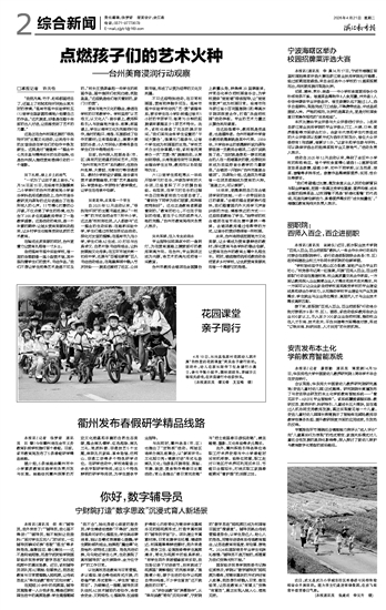 本报讯(记者 徐梦娇 通讯员 吕 攀)今年衢州将在全市义务教育阶段学校推行首个春假。日前,该市教育局发布了5条春假研学精品线路。