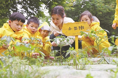 今年4月22日是第57个世界地球日。图为德清县乾元镇第一幼儿园开展“农场小观察员”主题活动,幼儿在教师引导下了解植物生长与自然保护的关系。 (本报通讯员 倪立芳 章美丽 摄)
