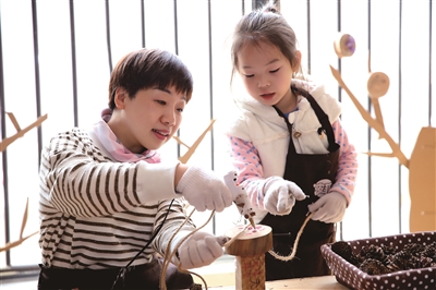 教师:我们再试一试。如果你做的扇子和你想的不一样,请你想办法调整,尽量与原来想的一样;如果第一把成功了,你可以再去选择更多不一样的图案,让你的扇子变得更加丰富、好玩。