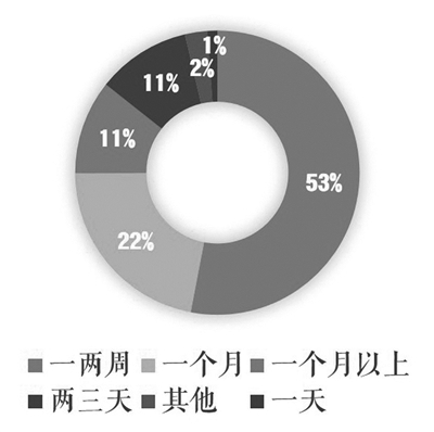 而花一个月以上才能读完一本书的教师,和两三天就读完一本书的教师,在人数上相差无几。这表明我们不仅有朗读者,也有啃读者,喜欢看大部头的著作,或者在阅读的过程中动笔和查资料,以增加阅读的附加值。当然,这里面也不排除有三天打鱼两天晒网的人。