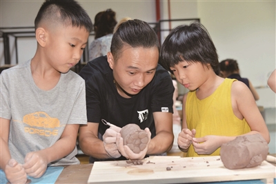 陶艺馆以现代陶艺为基础,结合美术教材与拓展课程的需要而建,是学校最具特色的将专业学科教室与场馆紧密联结的平台之一。馆内分拉坯区与制作区、装有专业电窑用以烧制的作品区。拉坯区内设有30台专业拉坯机,用于学生制作碗、瓶、碟等器物。陶艺课上,孩子们一个个兴高采烈地双手敲打、揉搓、拉、团,随心所欲,成就感满满。安全体验馆是学校开展安全教育的基地,也是目前金华地区体验设施最齐全的校内场馆。孩子们在这里学习消防、交通、防溺水等安全知识,并掌握基本急救、护理、逃生等技能。“一个体验场馆发挥的作用远远大于任何形式的口头说教。”徐锦生说,这也是学校舍得重金投入场馆建设的主要原因。