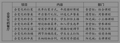 2015年冬天,有家长反映:天冷了,学生吃不到热菜热饭,怎么办?我把这个问题抛给参加行政会的教师们。太出乎我的意料了,一周后,他们交给我一个创意十足的解决方案《会变化的餐厅》,全新的食堂用餐管理方案,每一个创意项目都站在儿童的立场思考问题,都与立德树人密切联系。实施一年后,不仅家长好评如潮,学校食堂也一跃成为宁波市餐饮示范食堂,并接受宁波电视台采访。教师参与管理不仅仅是为了形成共识,而是让教师身处其中、主动作为,在解决一个个问题的过程中教师团队的创造力、凝聚力、领导力不断得到增强,成为学校不断进步的宝贵资源。