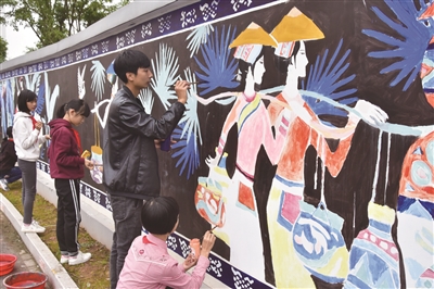 日前,在建德市大同民族小学的校园里,美术教师潘胤龙组织学生将畲族人民传统的生活、生产等场景,通过绘画形式,栩栩如生地呈现在墙面上,让更多的学生直观地了解畲族文化的韵味,同时也增添了校园民族文化建设的浓厚氛围。