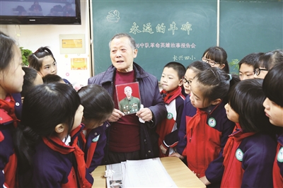11月27日,长兴县第四小学邀请校外辅导员、83岁的退休教师周雨梅来校,为学生讲述长兴当地著名革命前辈朱云芳的英雄故事,激励学生弘扬前辈的爱国精神。据了解,92岁的朱云芳曾参加过抗美援朝等多次重大战役。
