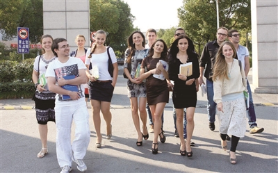 走在湖州师院校园里,不时能与各种肤色的留学生擦肩,500多名来自美国、俄罗斯、乌克兰等不同国家和地区的留学生把湖州师院变成了一个小小的“联合国”,各种不同风情的异域文化在这里交汇,成为校园里一道亮丽的风景。这几年,湖州师院坚持国际化办学,“留在湖州”成为越来越多留学生的选择,而走向世界也成为很多湖州师院学生新的追求。