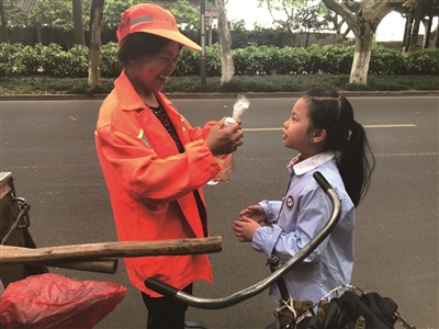 在 “五一” 国际劳动节来临之际,江山市解放路小学大队部组织开展了“我的祝福,送给最可爱的人”主题活动。学生利用课余时间向小区保安、环卫工人、建筑工人等一线工作者送上了亲手做的贺卡或小礼物。 (本报通讯员 倪小燕 吴玉燕 摄)
