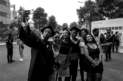 日前,金华职业技术学院举行了首届卢旺达政府委托培养班学生毕业典礼,首批32名学生顺利完成了学业。2014年,金职院启动了与卢旺达方面的五年合作计划,金职院派遣优秀教师前往卢旺达,推动当地高职教育发展,并建立卢旺达海外分校,开展汉语和职业技术培训,帮助当地培养实用型技术技能人才。图为卢旺达留学生及亲友在毕业典礼现场拍照留念。