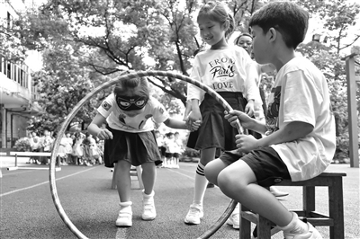 近日,义乌市保联小学举行首届心理健康教育活动周。学校先后举行角色秀、团体心理游戏、专家讲座、心理剧展演和团体心理辅导课等丰富多彩的活动。图为团体心理游戏中,一年级小朋友戴上眼罩,在同学帮助下穿越重重障碍。