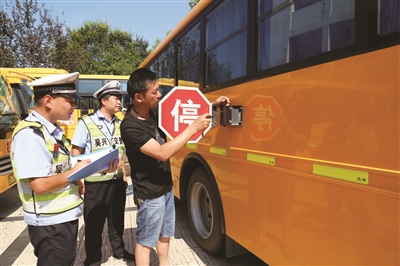 开学在即,湖州市吴兴区教育部门组织交警和技术人员对辖区内3家校运公司的91辆校车的车况进行全面检查维护,切实消除各类隐患,保障新学期3880名学生乘车安全。图为交警和技术人员正在对埭溪镇上强小学的校车进行检修。 (本报通讯员 屠红良 邓德华 摄)