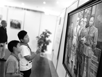 近日,由浙江图书馆、浙江理工大学法政学院、中国美术学院绘画艺术学院共同主办的“红船精神领航中国梦”主题系列活动开幕。图为学生在参观画展。