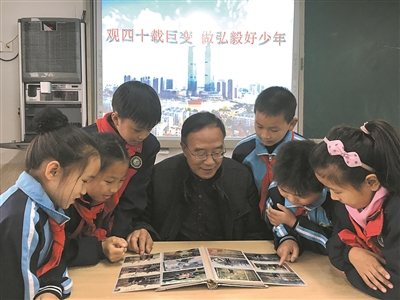 近日,湖州市吴兴区八里店镇常路学校开展了“晒老照片,讲祖辈奋斗故事”“我心中的湖州新地标”等活动。学校邀请退休教师走进校园,结合老照片中的故事,为学生讲述湖州的发展历程,引领他们感受改革开放40年带来的家乡变化。(本报通讯员 杨星星 摄)
