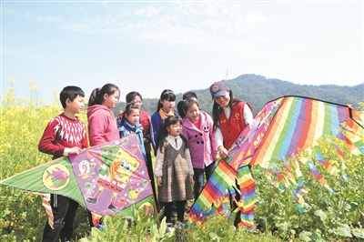 日前,建德市寿昌志愿服务队开展“大手牵小手 一起找春天”主题关爱留守儿童田园踏青活动。志愿者们带领20多名留守儿童来到郊外的寿昌镇大塘边村田园,观赏金黄色油菜花、放风筝、做游戏。