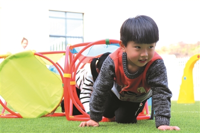 近年来,义乌市大力推进幼儿园晨间锻炼项目化,鼓励教师通过运动器械创新制作来丰富活动内容。图为义乌市苏溪镇中心幼儿园近日举行的教师自制户外体育器械评比活动中,孩子们正在展示各种玩法。