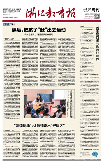 “对不符合国家标准要求的教室、硬件加大整改力度,新、改、扩建教室采光照明设备;实施‘阳光厨房’工程,为学生提供有助于视力发育的合理膳食;建立学生视力保健室,聘请学校视力保健员;加强近视防控动态监管,对握笔姿势正确率、眼保健操规范度等进行抽查与指导;开展预防近视漫画、童谣、手抄报等的创作活动,带领学生开展与近视有关的调查并撰写研究报告;切实减轻学生课业负担,保证学生每天1小时以上的校园体育锻炼……”对于该校的近视防控工作,去年11月,郑雁琴在“先行先试”工程的全市推广会上侃侃而谈。
