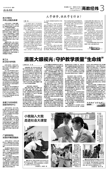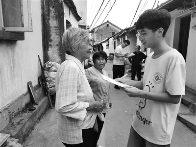 | 宁波卫生职业技术学院暑期派出了二十七人的社会实践队伍,前往乡镇、社区为居民提供垃圾分类知识宣讲等服务。大学生志愿者们上门入户为村民讲解垃圾分类知识,共走访六百余户家庭,发放一千多本垃圾分类宣传册。(本报通讯员 高 洋 摄) |