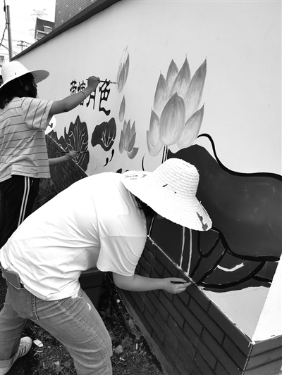 暑期,浙江树人学院艺术学院与杭州市余杭区仁和镇平宅村合作,开展“送廉政下乡,送法制下乡,送美丽下乡”主题实践活动。师生们发挥专业特长,为村里手绘了总面积800多平方米的文化墙。 (本报通讯员 朱茹倩 摄) |
