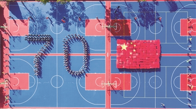 校园里军歌嘹亮、口号齐整,近日德清县第四中学操场上出现了一群顶着烈日身着迷彩服的“小军人”。他们手持小红旗,步入操场快速组成“五星红旗”和“70”字样的方阵,展现连日来军训的成果,献礼新中国70周年华诞。(本报通讯员 朱淼泉 摄)