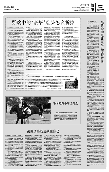 学生一心埋在学习中,生活能力得不到提高。有的到了四年级还不会整理书包,不知道天冷要添衣天热要脱衣,不知道给家人端茶送水盛饭夹菜……