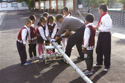 山区家长的素养虽然存在着各种各样的问题,但也有自身的优势:有些家长动手能力极强,有些家长农耕很厉害,有些家长对美食很有研究等。我校就聘请这些家长作为学校乡村少年宫的授课教师,本学期分别开设了竹制创客和趣味手工课,外派一名教师协助管理。