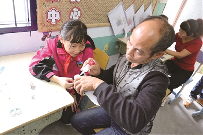 这学期接到任务的两位家长都非常用心,每次都提前一星期就准备上课的内容,购买材料、设计样稿等。开课的叶承浩爸爸告诉我,为了让学生们在课堂上更好地理解所讲授的内容,他花了好几个晚上绘制了制作竹蜻蜓的草图。那一刻,我感动极了。这样的家校合作模式不仅充实和丰富了学生们的课余生活,弥补了山区年轻教师技能不足的短板,而且让山区家长们体会到如何做教育。