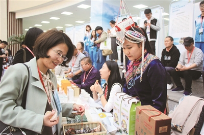 近日,“农信杯”第二届浙江省大学生乡村振兴创意大赛总决赛在浙江农林大学举行。来自全省73所高校的212个项目进入总决赛,1000多名高校师生参加了角逐,参赛作品为空心村改造、乡村景区打造、农业品牌塑造等提供了解决思路和方案。图为农产品销售推广现场。