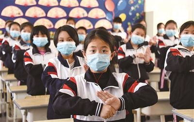 自复学以来,不少学校坚持“健康第一”理念,组织学生进行室内体育锻炼。仙居县埠头镇中心小学教师创编了“布谷鸟防疫律动操”,以增强学生体质。图为学生们随着音乐律动做操。(本报通讯员 王华斌 摄)