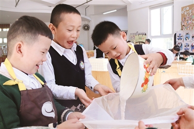 浸泡、磨浆、过滤、点卤、定型……日前,缙云县新区实验幼儿园的孩子们在课堂上学会了做豆腐。制作豆腐是该园项目式活动“豆豆旅行记”中的一项,接下来孩子们还要参加另一项活动“百变豆腐”。图为孩子们正在过滤豆浆。