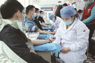 在喜迎建党100周年和“向雷锋同志学习”题词发表58周年之际,为大力弘扬“奉献、友爱、互助、进步”的志愿服务精神,省教育厅开展了“学雷锋精神作表率,聚青春力量献爱心”无偿献血活动,厅机关和直属单位共60余人报名参加。图为献血场景。