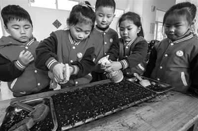 近日,长兴县夹浦镇中心幼儿园“校园播种节”启动,在当地环沉村党员志愿者的指导下,孩子们在育苗盘中播下蔬菜种子,体验播种乐趣,丰富种植知识,感受劳动的喜悦。图为学生为蔬菜种子浇水。
