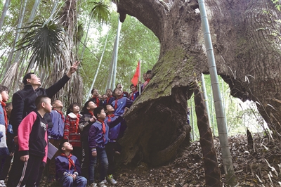 近日,建德市梅城南峰小学学生在教师的带领下,来到当地童家山上,探访两棵八九百年树龄的古樟树。大家通过观测,了解古树的沧桑历史,增强珍爱古树名木、保护生态环境的意识。