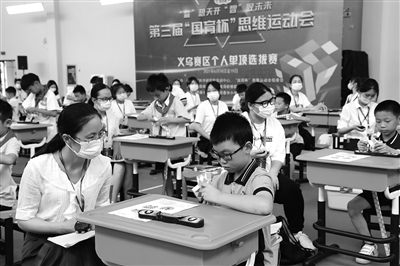 近日,全国第三届“国育杯”思维运动会区域选拔赛暨义乌市第二届思维运动会在义乌市春华小学举行。本届思维运动会分个人赛和团体赛。图为参赛选手正在快速拼搭魔尺。 (本报通讯员 陈 欣 叶青青 摄)