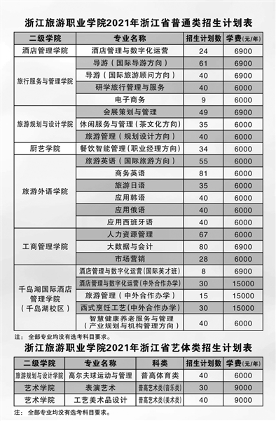 浙江旅游职业学院下设的酒店管理学院、旅行服务与管理学院、旅游规划与设计学院、厨艺学院、旅游外语学院、艺术学院、工商管理学院、千岛湖国际酒店管理学院等8个二级学院,也充分发掘各自的专业优势,为毕业生的就业开展全方位服务。