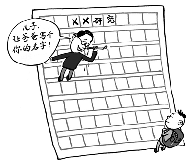 近日,有媒体报道称“儿子获奖发明和父亲研究所成果高度相似”,引发舆论关注。近年来,类似“父亲写论文给孩子署个名”“小学生研究抗癌并取得突破性成果”等案例接二连三,影响了竞赛公平,加剧了教育焦虑。某些人口中的“大手拉小手”“子承父奖”实际上是一种新型学术腐败,破坏了科研群体形象,污染了学术土壤,有损社会公平,一旦被披露,势必会遭到严惩。 (王 铎 绘)