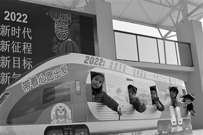 近日,湖州市吴兴区织里镇晟舍小学师生坐着“虎虎生威号”2022次时光列车,手持“2021年成长足迹”“2022年新目标”的心愿卡出发了。列车将经过“冬奥会”“空间站”“党的二十大”等大事站点,学生在其中感受新时代祖国的发展,激励自我不断奋进。