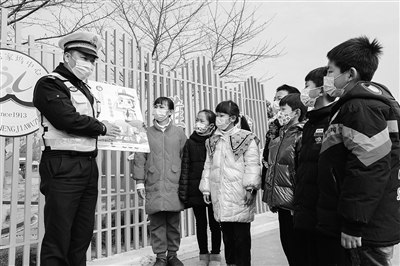 寒假前夕,浦江县公安局交警大队针对不同年龄学生的出行习惯和认知特点,通过线上云平台直播、线下室外操场互动相结合的宣传方式,普及寒假交通安全出行常识和注意事项,提升中小学生及幼儿的假期交通安全意识和自我保护能力。图为县公安局交警大队民警在郑家坞镇中心小学开展“假前一课”交通安全宣传活动。(本报通讯员 杨晓东 摄)