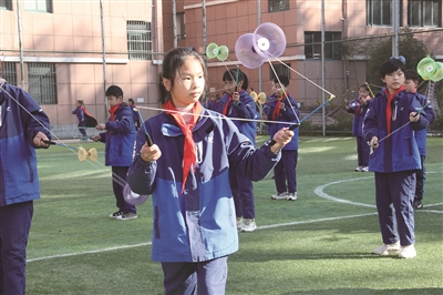 织带、刺绣、剪纸、木工、空竹……20多个非遗项目社团一字排开,上百名学生正在教师的指导下学做小工匠。课后托管服务时间,走进磐安县新渥街道深泽小学,随处可见这样的社团活动。据悉,“双减”之下,该校把非遗传承与学校托管服务课程开发、少先队社团活动有机融合,积极探索“校中团”模式,形成“一师一特长,一师一课程”体系,满足不同学生的成长需求。 (本报通讯员 胡晓娟 摄)