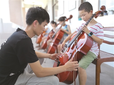 “小朋友们真是太热情了!”初次见面,卓晓琳和同伴们直呼。报名参加此次活动的共有58人,他们中有不少已参加过两三届。“这些人里有之前学过的,也有零基础的。我们会根据他们的实际情况进行个性化教学。”相处时光虽然短暂,卓晓琳却在这些小朋友身上看到了不小的变化:从刚开始的不懂音阶、不敢站在舞台上到最后能在汇报表演中完整呈现一部作品,专业素养得到了明显提升。“我们都觉得很骄傲。”卓晓琳说。