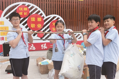 “这次我们用废纸换回了好多学习用品呢!”近日,绍兴市柯桥区杨汛桥紫薇小学开展了“废纸回收,鸡毛换糖”活动。学校少先队大队部对各班的可回收垃圾进行称重、登记,并据此为学生兑换奖品。通过“鸡毛换糖”活动,校园里刮起了“正确垃圾分类,保护生态环境”的文明新风,并不断涌现出“环保小达人”。