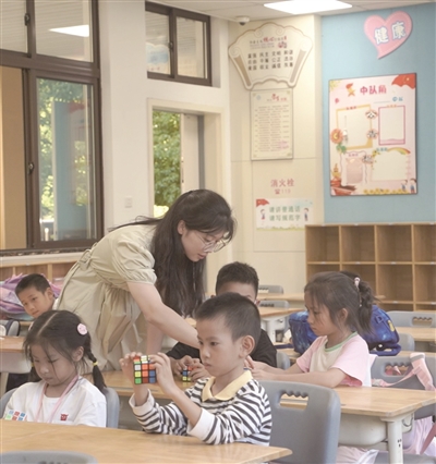 汤宇琪在晚托班中带领学生“玩转”魔方。