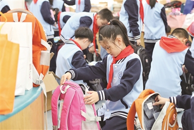 10月19日,130多箱书籍、文体用品从义乌市绣湖小学发出,奔向四川省巴中市巴州区第一小学校。两校是东西部协作结对学校,学生们在平时的书信来往、远程教学互动中结下了深厚的友谊。10月13日是少先队建队节,学校发出为巴州一小送上建队礼的倡议。学生们积极响应,从挑选礼物到打包整理全程参与,耗时一周送出了这份跨越千里的祝福。图为学生们在整理捐赠物资。