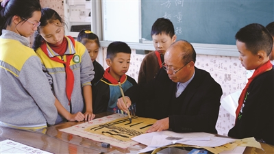 对书法教师方华的邀请在两年前就已经发出。2018年方华从章村小学退休,多才多艺的他成了“镇里的宝”,组建了威风锣鼓队、凤鸣合唱团、老年书法班等团体,生活更加忙碌了,也因此拒绝了袁恩忠的前两次邀请。今年暑假,袁恩忠对这位省书法教育研究会会员、国家一级书法师发出了第3次邀请。“我要是再不答应,就有违教育初心了。”如今,方华每周在报福小学开设14节书法课,每天奔波30多公里授课,力求3年内将该校书法教育打造成县级特色。