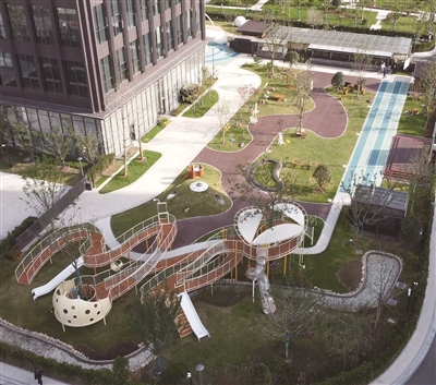整个园区就是一个大课堂,父母上班路就是孩子上学路,午休时间就能完成家园沟通,孩子发生任何事情都能第一时间告知家长……嵌入产业园区的幼儿园有效弥补了家长因工作忙碌而缺席孩子成长的遗憾。在汪姗姗看来,孩子跟着爸爸妈妈一起上下班的过程就是最美好的亲子陪伴时光。