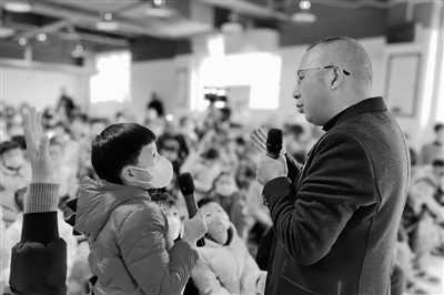 日前,暌违3年的“海门书韵”教育百家讲堂线下活动在台州图书大厦重新启动,150个参加名额被慕名而来的家长们“秒杀”一空。台州市椒江区教育局邀请区名师名校长、教育专业人士,开设阅读、文学、教育政策咨询、心理健康等专题讲座,并推动活动走进文化礼堂、企业、村舍等场所。图为省特级教师黄吉鸿正在和学生交流读书心得。