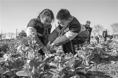新学期伊始,德清县禹越镇徐家庄中心小学开展劳动实践教育,学生们参与蔬菜栽种、挖土、浇水等活动,感受劳动的艰辛和丰收的快乐。图为学生在禹越镇爱心菜园采收蔬菜。