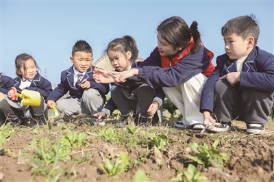 2月15日,长兴县夹浦镇陶家湾大自然艺术幼儿园的孩子们在教师的带领下走进田园,亲手种下土豆苗,体验春种。